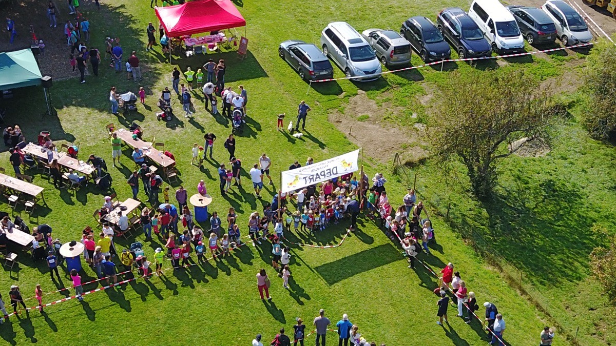 Point de vue aérien de la Course des Taleines à Vulliens, course à pied pour les enfants, adultes et familles.